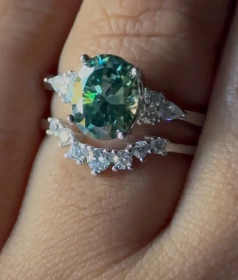 Stunning 2-piece moissanite ring set featuring brilliant 1-carat moissanite stone with genuine 925 sterling silver, 18K gold plating, and zircon accent stones. Perfect for engagements, weddings, or special occasions, this luxurious set combines premium materials with timeless elegance and comes with a certificate of authenticity and matching gift box.